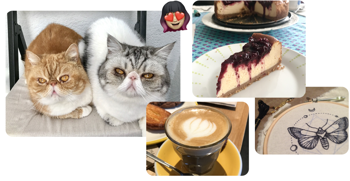 When I’m not working, I love experimenting with new cooking recipes (always on the hunt for the perfect dessert!), spending quality time with my cats and my husband, planning my next travel adventure, getting into some embroidery, or exploring cozy local cafés. ☕ ❤️