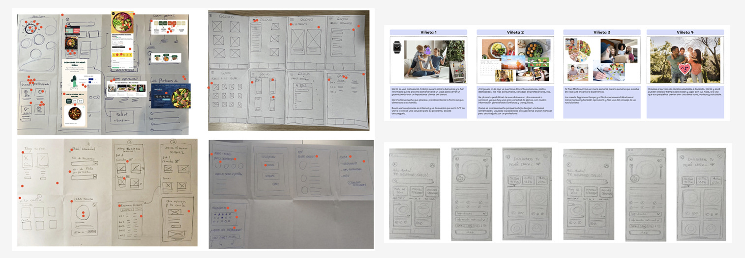 To begin exploring potential design solutions, the team first carried out a Crazy´s 8 exercise, where each member presented their proposals and then voted on the best ideas.