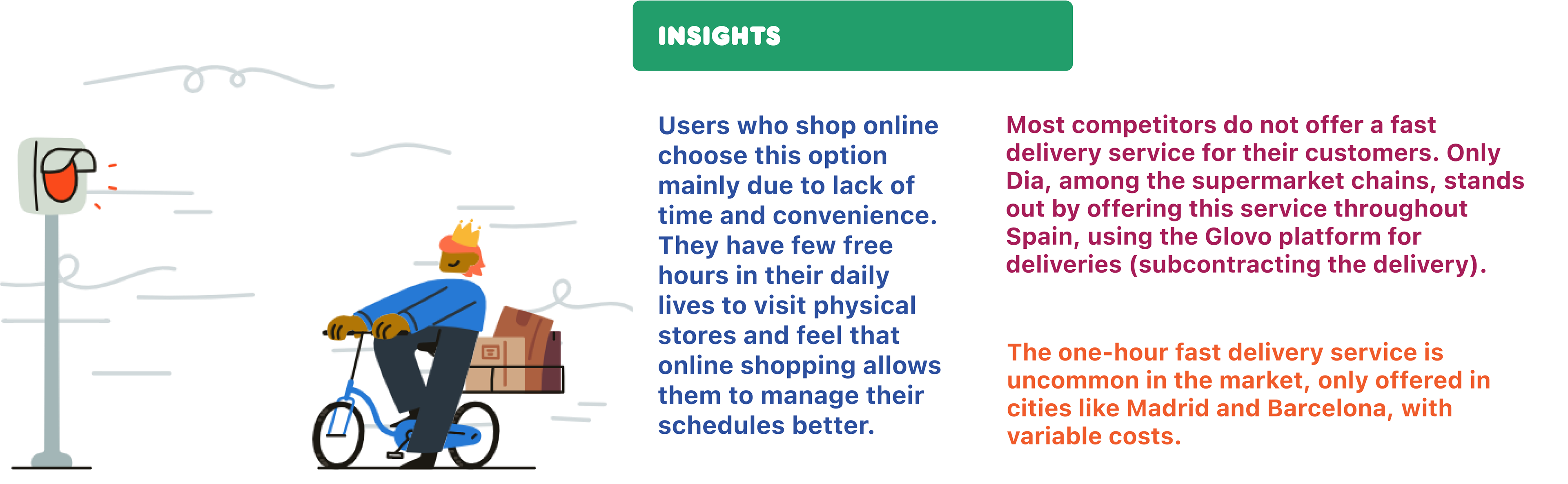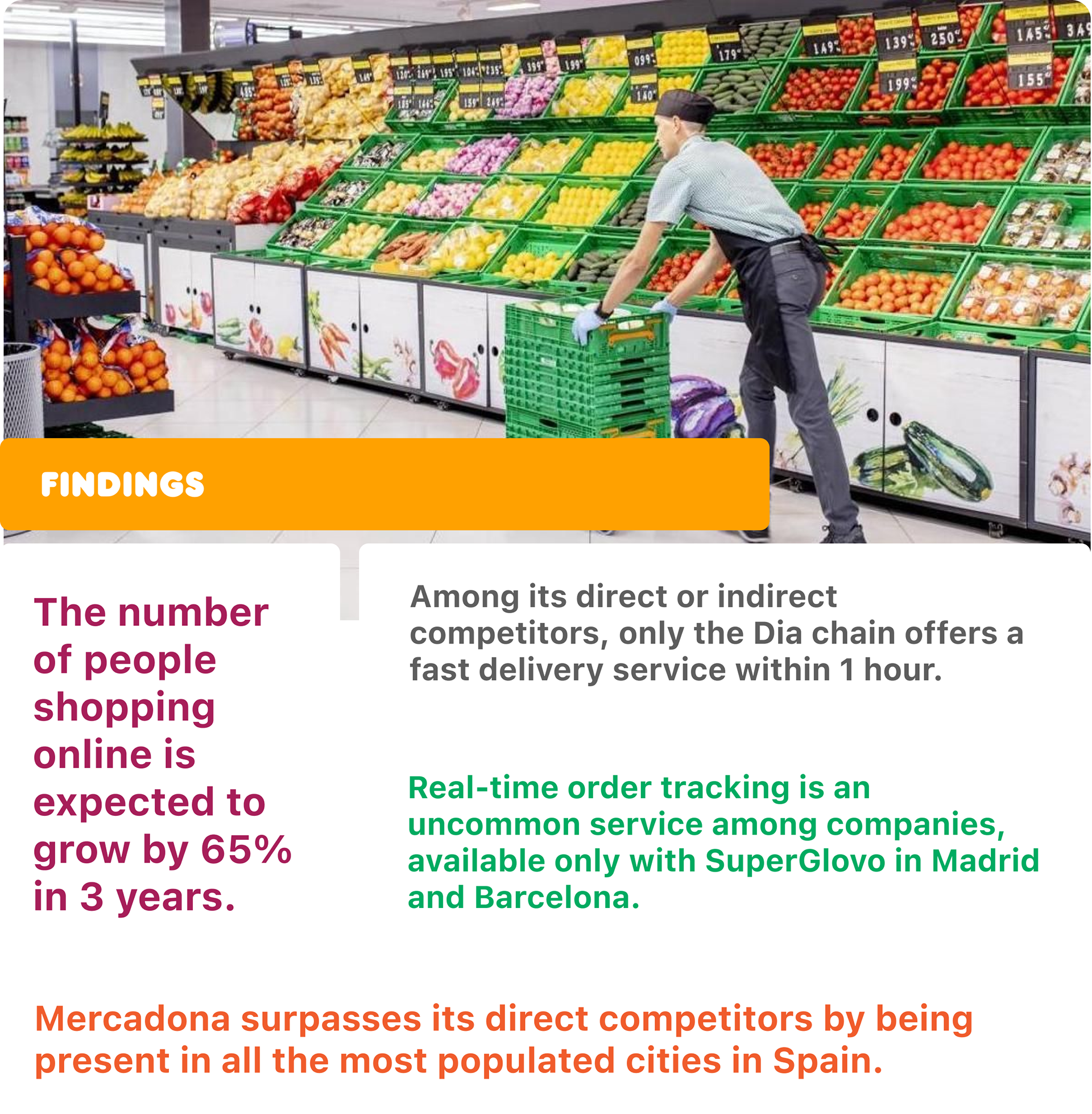 To achieve my goal, the information provided by research was fundamental. I had no idea how each supermarket chain behaves when selling online, and discovering so much data about the potential of this niche surprised me.